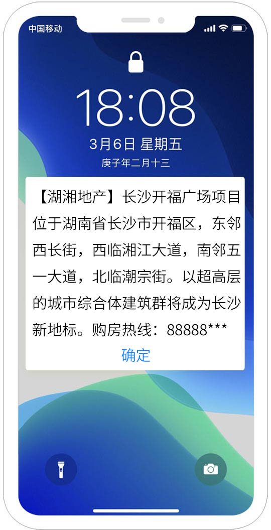 紅楓葉閃信群發平臺 是指用戶在收到閃信群發內容后,無需打開,短信內容直接顯示在用戶手機屏幕上,用戶如果沒有點擊閱讀,則閃信內容一直有顯示,用戶必須點擊才能關閉,真正實現了高閱讀率、高到達率!提升了用戶對產品的轉化率!